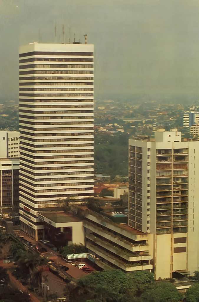 Kawasan pusat perbelanjaan, apartemen dan perkantoran Ratu Plaza di Jl. Sudirman, Jakarta, di tahun 1980.