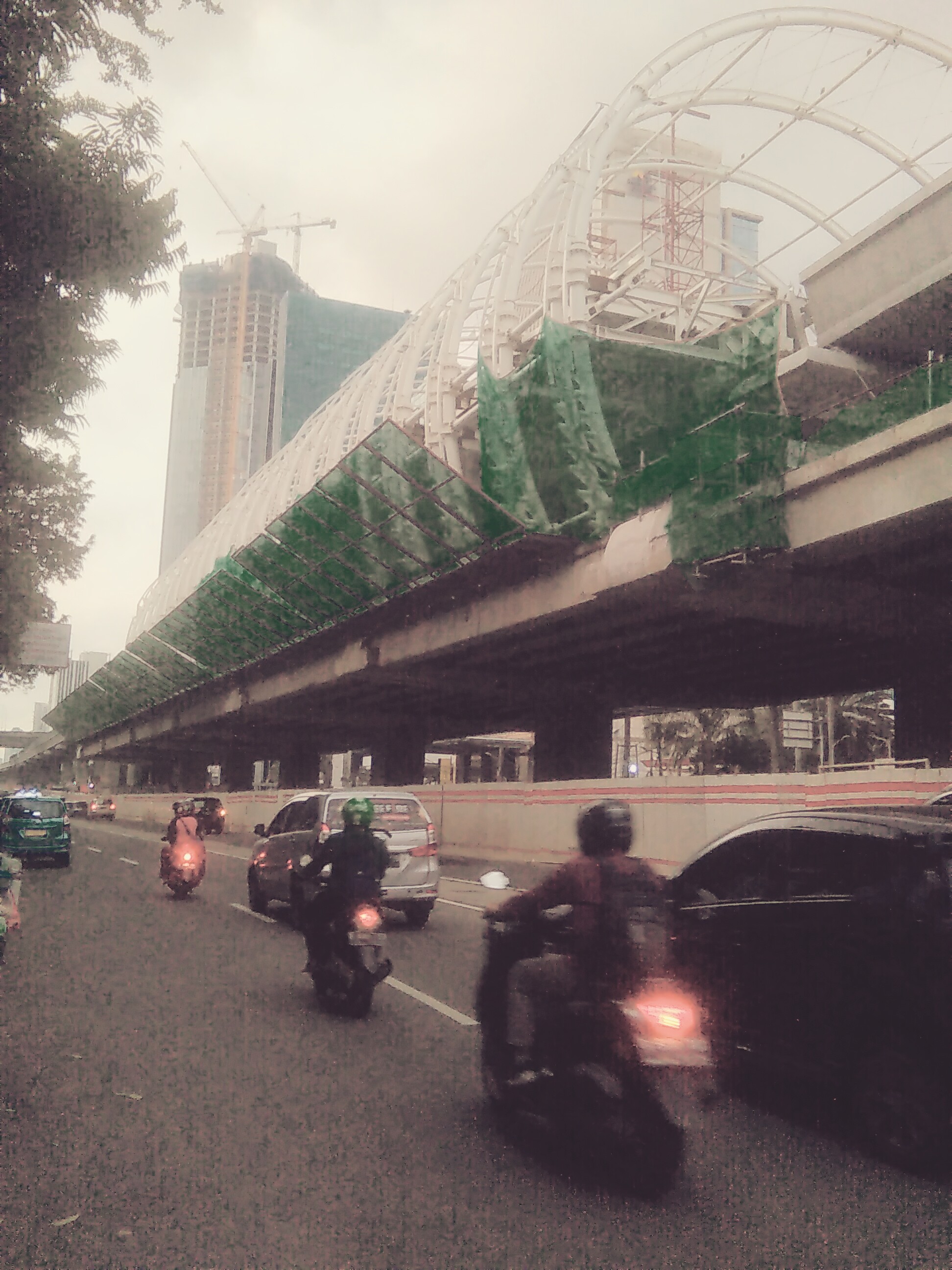 Di Kuningan, Jakarta, atap stasiun kereta LRT, sudah mulai terlihat.