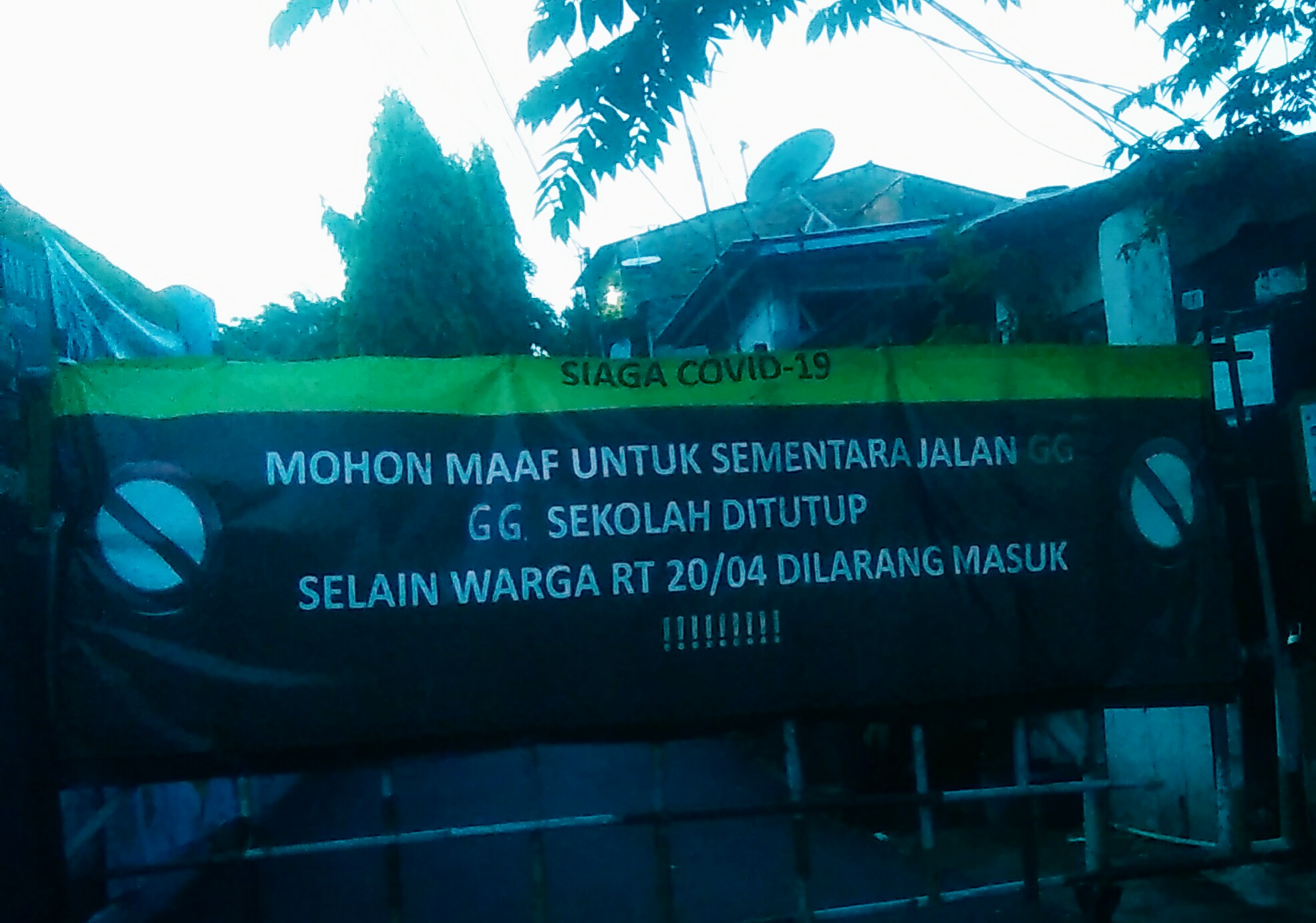 FOTO HARI INI: ‘PSBB Mikro’ Oleh Warga 15 Mei 202015 Mei 2020 oleh Tim Editor BRE, posted in Foto Hari Ini Saat PSBB terkait Covid-19, warga Jakarta banyak yang memerketat aras keluar-masuk lingkungan, guna memersempit rantai penularan wabah tersebut. Beri peringkat:Bagikan ini: Klik untuk berbagi di X(Membuka di jendela yang baru) X Klik untuk membagikan di Facebook(Membuka di jendela yang baru) Facebook Klik untuk mengirimkan email tautan ke teman(Membuka di jendela yang baru) Surat elektronik Klik untuk mencetak(Membuka di jendela yang baru) Cetak Klik untuk berbagi di WhatsApp(Membuka di jendela yang baru) WhatsApp Suka Memuat... Terkait