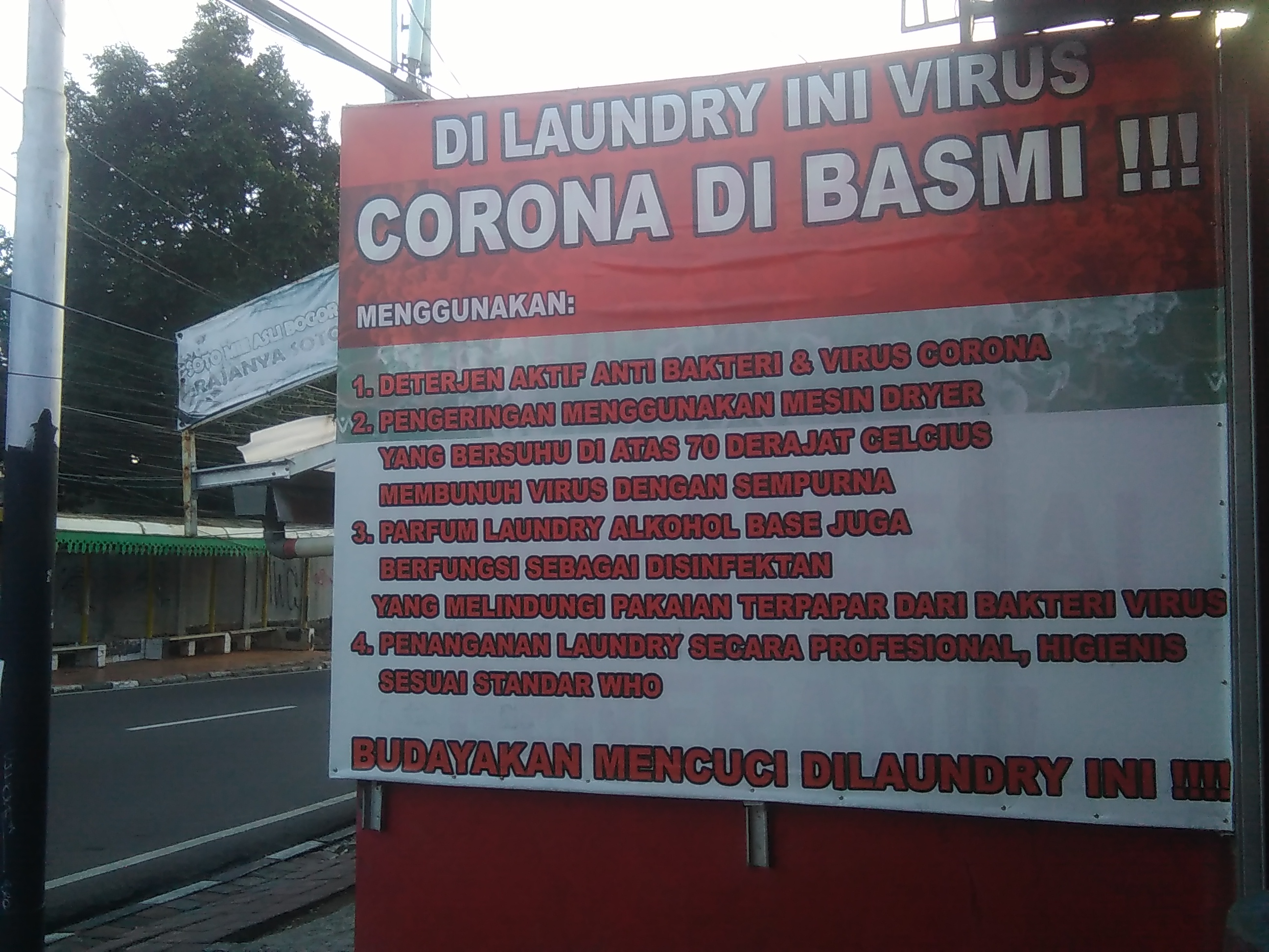 FOTO HARI INI: Laundry Anti-Corona 26 Mei 2020 oleh Tim Editor BRE, posted in Foto Hari Ini Pandemi corona menjadi peluang bisnis tersendiri. Salah satu yang menangkap peluang dari pandemi itu adalah satu jaringan laundry kiloan. Beri peringkat:Bagikan ini: Klik untuk berbagi di X(Membuka di jendela yang baru) X Klik untuk membagikan di Facebook(Membuka di jendela yang baru) Facebook Klik untuk mengirimkan email tautan ke teman(Membuka di jendela yang baru) Surat elektronik Klik untuk mencetak(Membuka di jendela yang baru) Cetak Klik untuk berbagi di WhatsApp(Membuka di jendela yang baru) WhatsApp Suka Memuat... Terkait