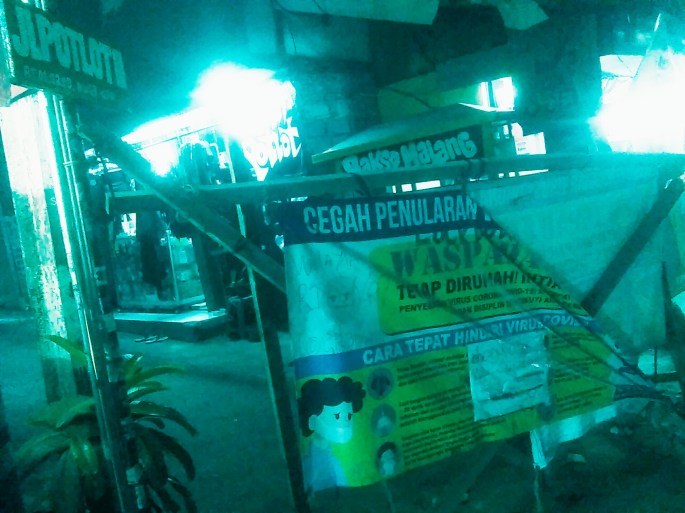 FOTO HARI INI: ‘Lock Down’ di Area Slankers 6 Juli 20205 Juli 2020 oleh Tim Editor BRE, posted in Foto Hari Ini Jalan Potlot, Duren Tiga, Jaksel, pada Minggu Sore selalu semarak oleh berhimpunnya penggemar grup musik Slank. Namun sore kemarin, area itu senyap oleh sebab ada pembatasan arus keluar-masuk di jalan itu, demi menihilkan penyebaran virus corona. Beri peringkat:Bagikan ini: Klik untuk berbagi di X(Membuka di jendela yang baru) X Klik untuk membagikan di Facebook(Membuka di jendela yang baru) Facebook Klik untuk mengirimkan email tautan ke teman(Membuka di jendela yang baru) Surat elektronik Klik untuk mencetak(Membuka di jendela yang baru) Cetak Klik untuk berbagi di WhatsApp(Membuka di jendela yang baru) WhatsApp Suka Memuat... Terkait
