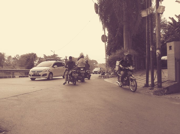 Di sebuah persimpangan belakang Gedung RPX (dikenal sebagai Gedung Fedex), Jaksel, para pengendara sepeda motor harus sangat hati-hati karena bertemu dengan kendaraan roda empat yang baru keluar dari jalan tol. Belum ada lampu lalu-lintas di lokasi itu.