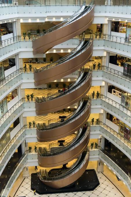 Eskalator yang terlihat di foto di atas, bentuknya spiral. Pelan tapi pasti dan meyakinkan, eskalator itu mengantar pengguna naik lantai demi lantai. Fasilitas itu didapati di New World Daimaru Department Store, Shanghai, Tiongkok. Dibuat oleh Mitsubishi Electric. (Naskah dari Mirror.co.uk/Foto dari ThatsMag.com dan Mitsubishi Electric)