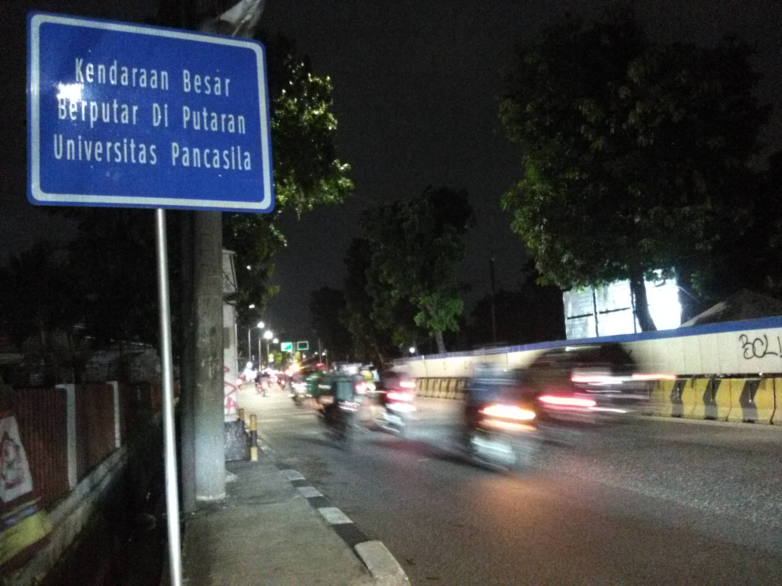 Jelang penuntasan jalan layang turn over di Lenteng Agung Jaksel, rambu lalu-lintas terlihat terpampang. Di antara itu yakni larangan buat kendaraan besar memutar arah pada jalan layang tersebut, musabab hal itu yakni kecuraman-kesempitan nan menyukarkan kendaraan gergasi.