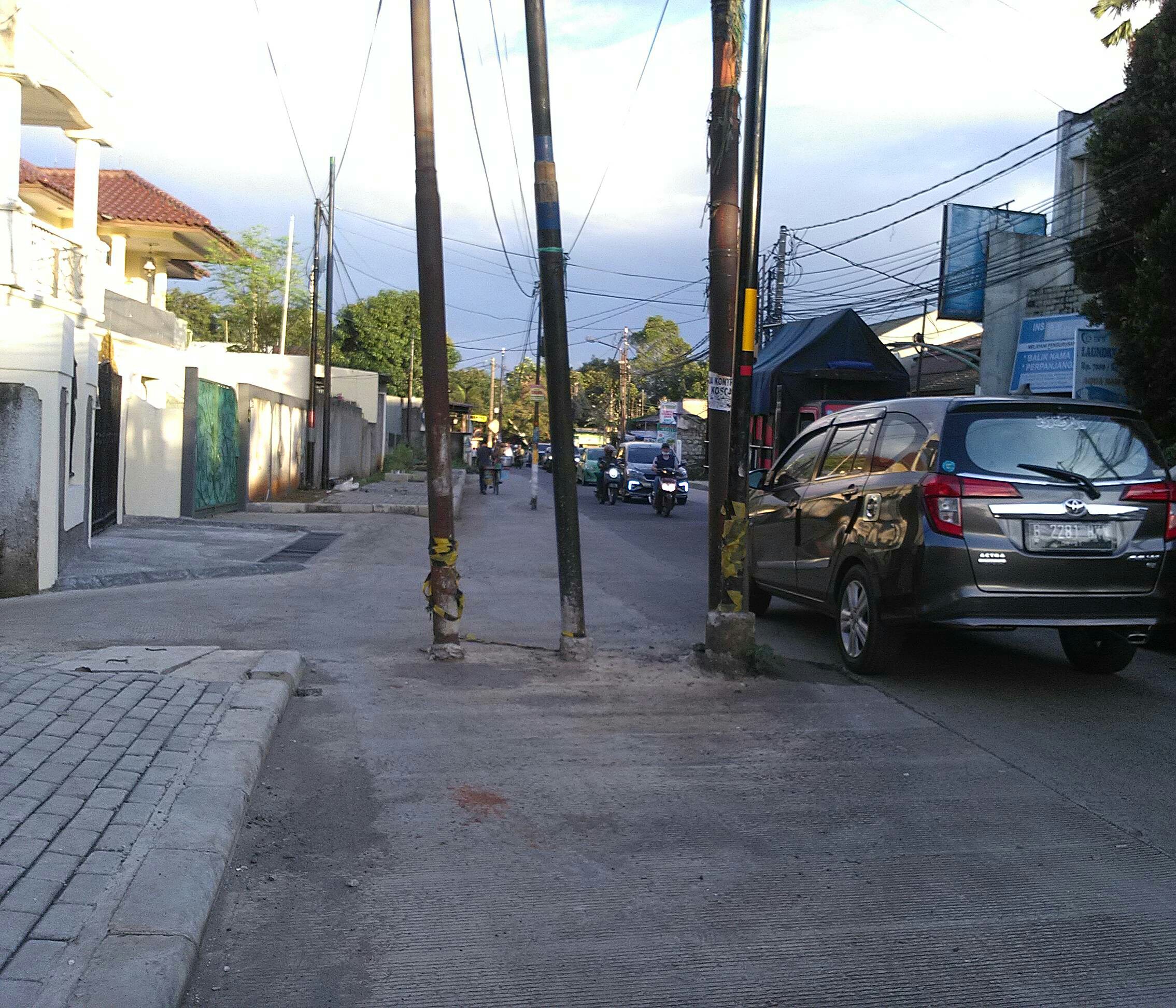FOTO HARI INI: Trio Tiang Jalan 13 Februari 202113 Februari 2021 oleh Tim Editor BRE, posted in Foto Hari Ini Foto yang diambil kemarin sore itu menunjukkan tiga tiang listrik yang masih di tengah jalan. Sebagai akibat pelebaran jalan di sebuah kawasan batas Jaksel-Depok tersebut. Beri peringkat:Bagikan ini: Bagikan ke X(Membuka di jendela yang baru) X Bagikan pada Facebook(Membuka di jendela yang baru) Facebook Kirim email tautan ke teman(Membuka di jendela yang baru) Surat elektronik Cetak(Membuka di jendela yang baru) Cetak Bagikan ke WhatsApp(Membuka di jendela yang baru) WhatsApp Suka Memuat... Terkait