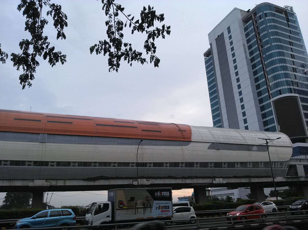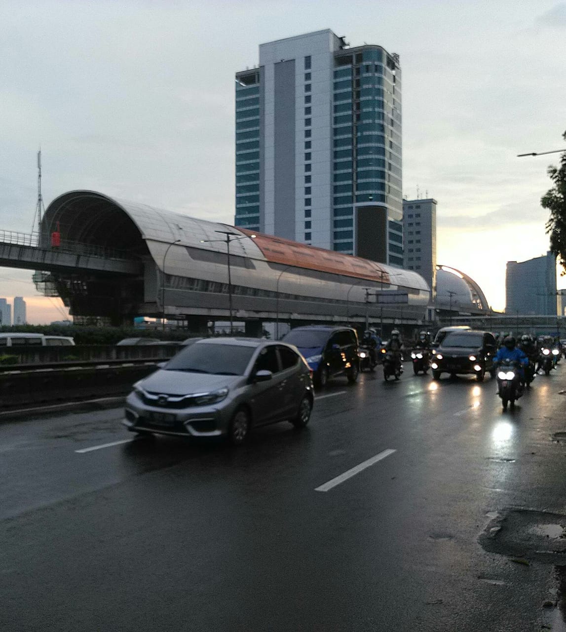 Stasiun untuk naik-turun penumpang kereta LRT di Jalan Gatot Subroto Jaksel sudah terlihat bentuknya. Berbentuk menyerupai kapsul.